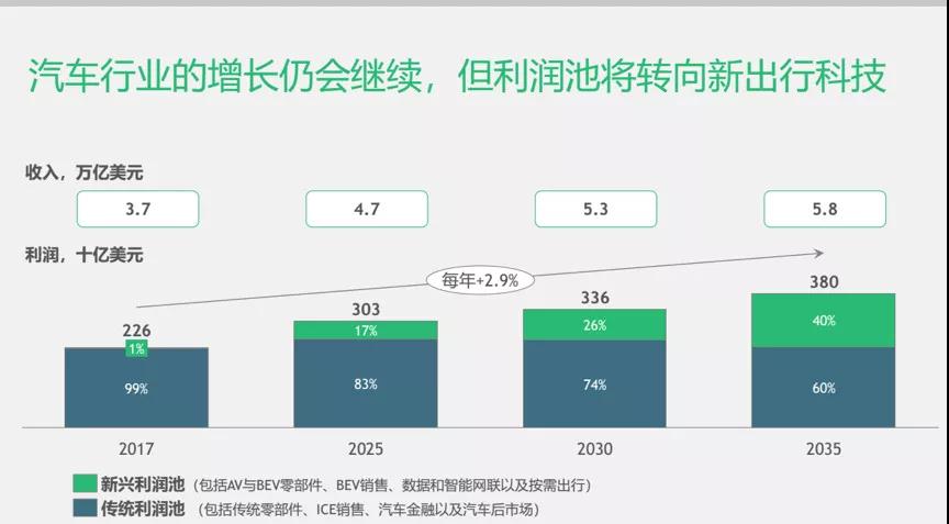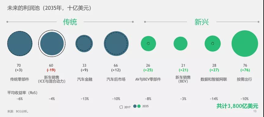 從BCG預(yù)測的利潤池結(jié)構(gòu)可以發(fā)現(xiàn),2035年的行業(yè)利潤組成和2017年完全不同。