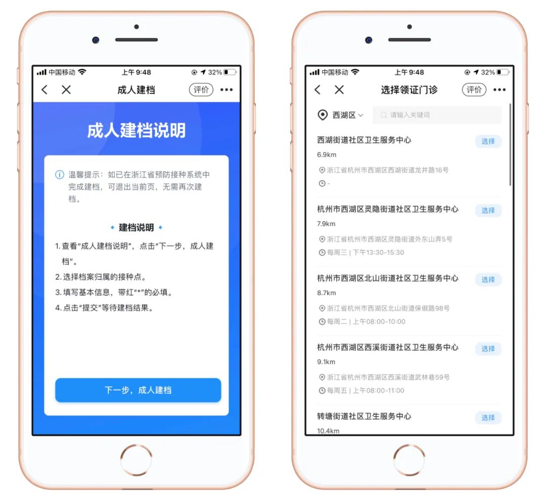 查看建檔說明,選擇領(lǐng)證門診。(可在搜索欄輸入對應(yīng)接種證申領(lǐng)門診名稱進行關(guān)鍵詞搜索)